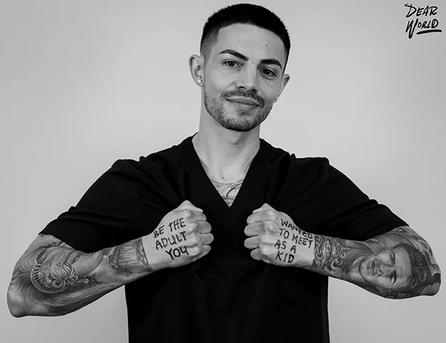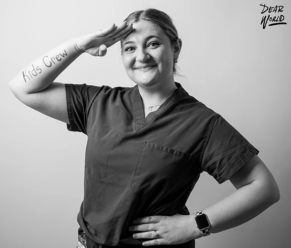 As part of our organization-wide celebration of our new mission statement, associates from across our health system participated in a Dear Hospital activation. Participants are photographed wearing “brain tattoos” – short, meaningful messages written on their skin – that visually represent their connection to the new Mission. These portraits highlight purpose, compassion and connection at the center of Rady Children’s Health.